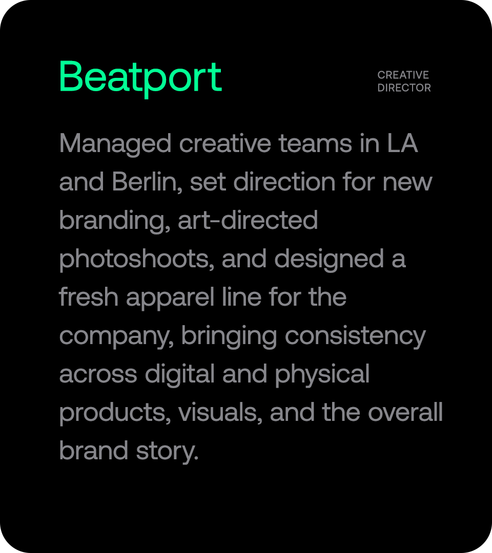 the narrative and visual language that bring a story into focus. I aim for work that feels honest, distinct, and quietly powerful, that connects with real culture and lifestyle.